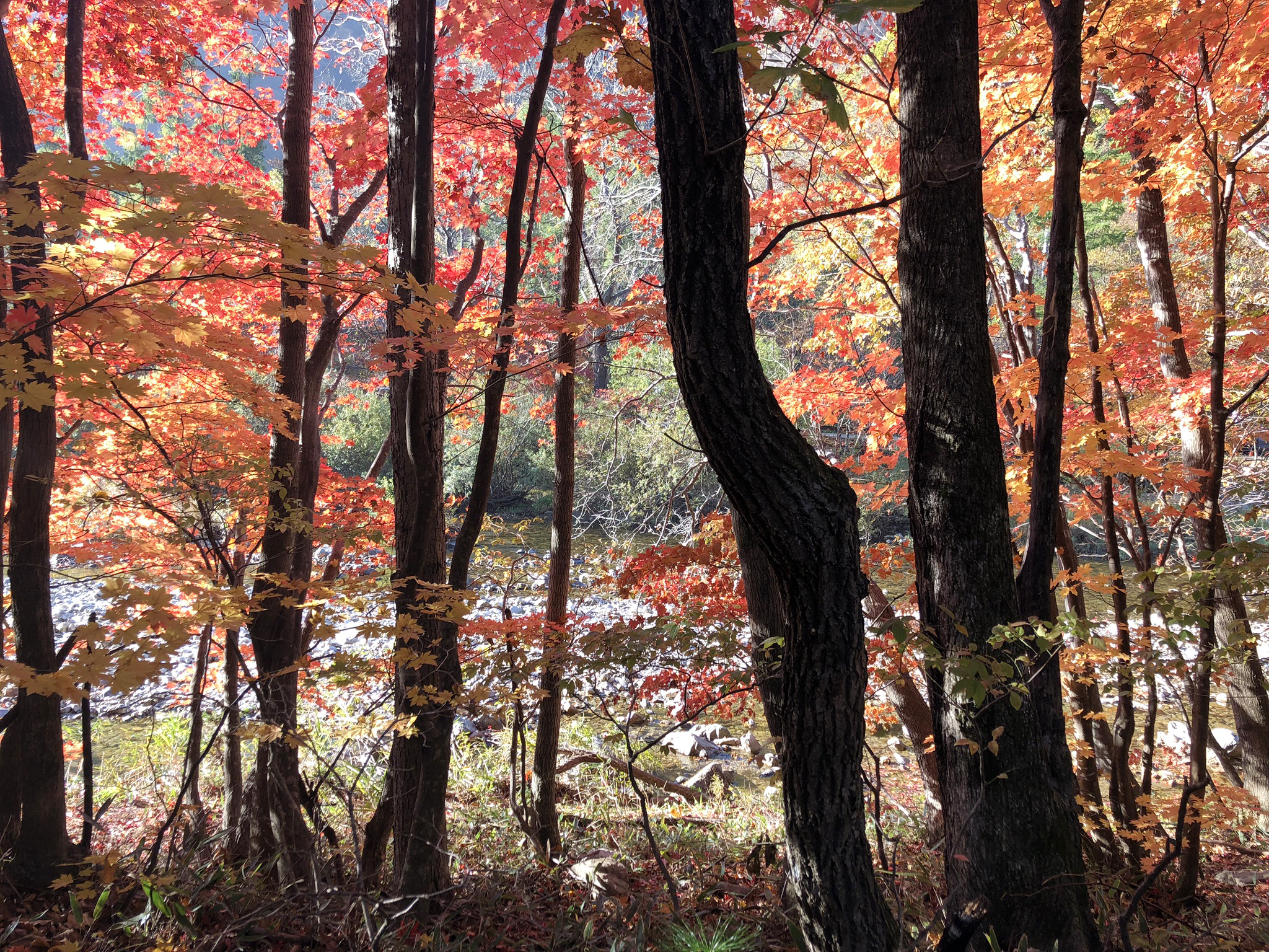 입구에서 백담사까지의 백담계곡 단풍을 보며